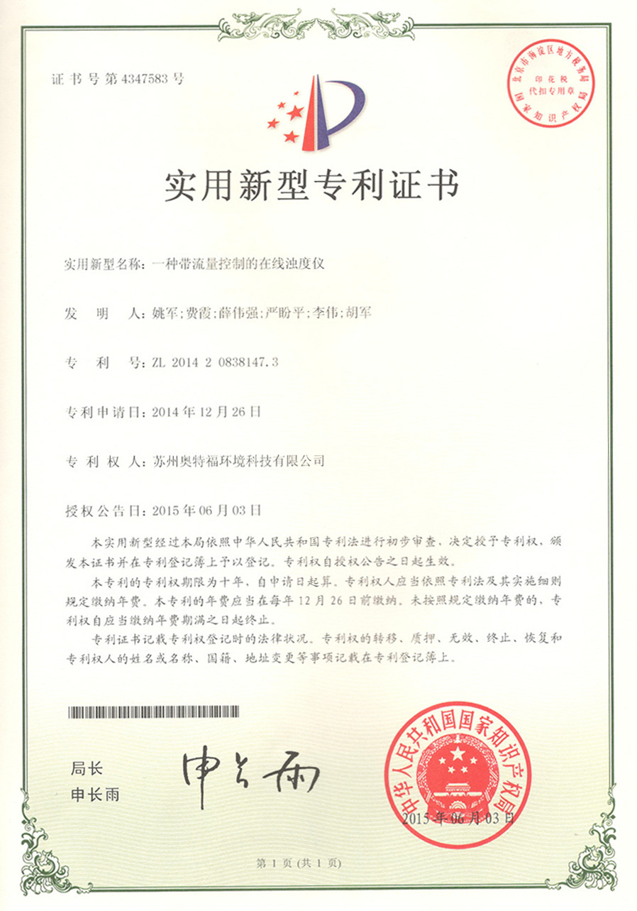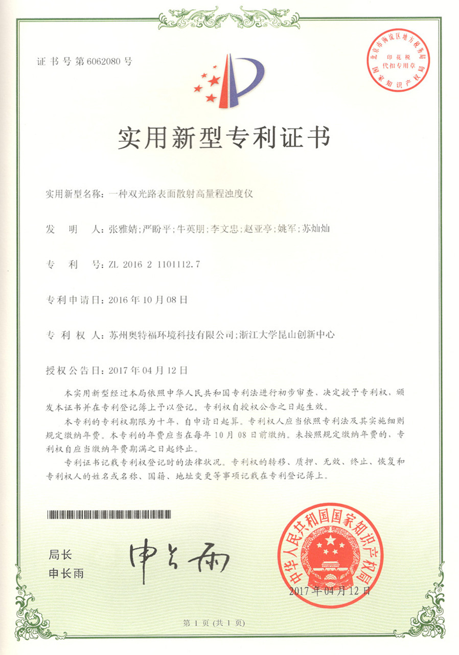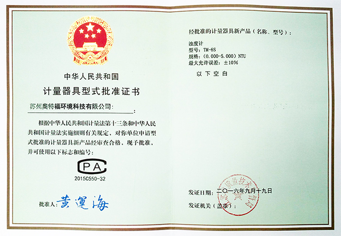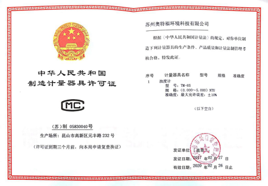 TM-6S濁度計(jì)正式獲得由昆山市市場監(jiān)督管理局頒發(fā)的《中華人民共和國制造計(jì)量器具許可證》。